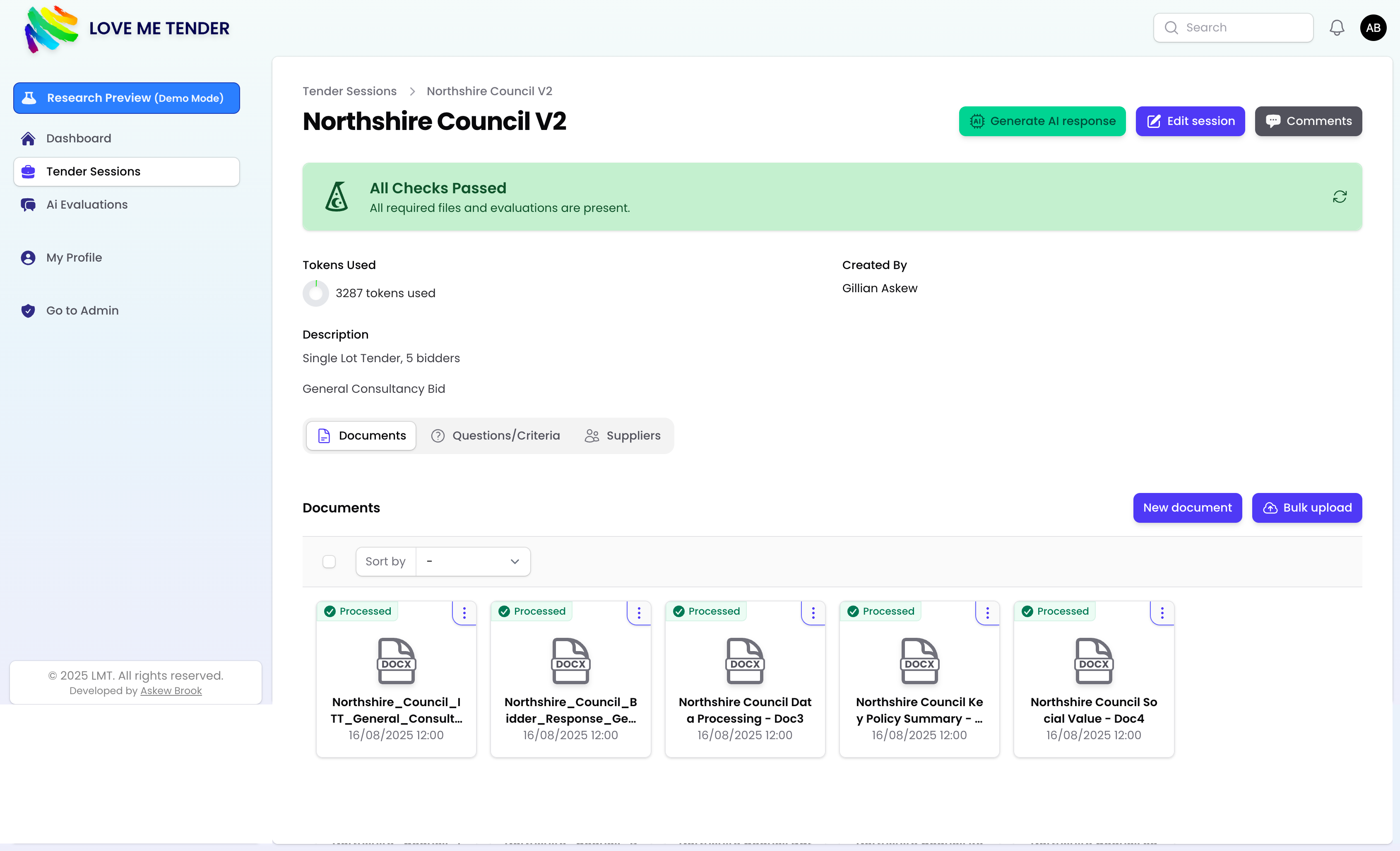 Traditionally, these tasks can take days of human effort and leave room for inconsistency and error. LoveMeTender’s goal was to redefine the process using AI, creating a platform that delivers speed, fairness, and scalability.